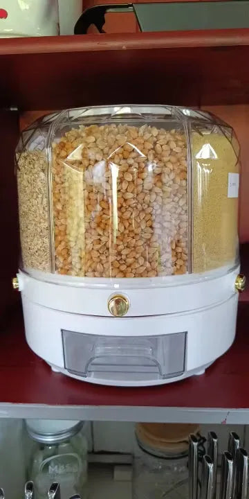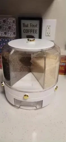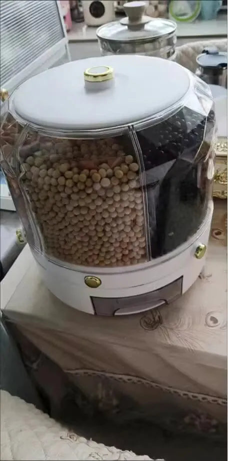 Sag dem Küchenchaos auf Wiedersehen. Mit unserem innovativen rotierenden Lebensmitteldispenser war es noch nie einfacher, deine Speisekammer ordentlich zu halten. Entwickelt für luftdichte Aufbewahrung, blockiert er Feuchtigkeit, um die Frische von Getreide, Müsli, Snacks und sogar Tierfutter zu bewahren. Eine einzigartige 360°-Drehfunktion ermöglicht mühelosen Zugriff auf jedes Fach. Kein Kampf mehr mit Tüten oder Boxen – finde, was du brauchst, wann du es brauchst. Das Layout mit sechs Fächern lässt dich verschiedene Lebensmittel mühelos lagern und bietet eine vielseitige Lösung für deine Küchenaufbewahrungsbedürfnisse. Genieße heute die Bequemlichkeit und Frische.