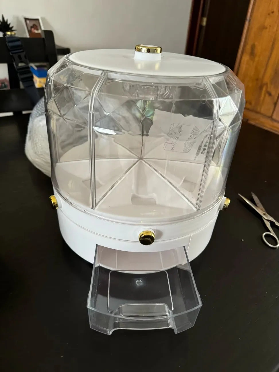 Die 360°-Drehung ist so konzipiert, dass sie einfachen Zugriff auf jedes Fach ermöglicht. Drehe einfach den oberen Teil, um den gewünschten Abschnitt auszuwählen, was es mühelos und bequem macht.